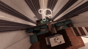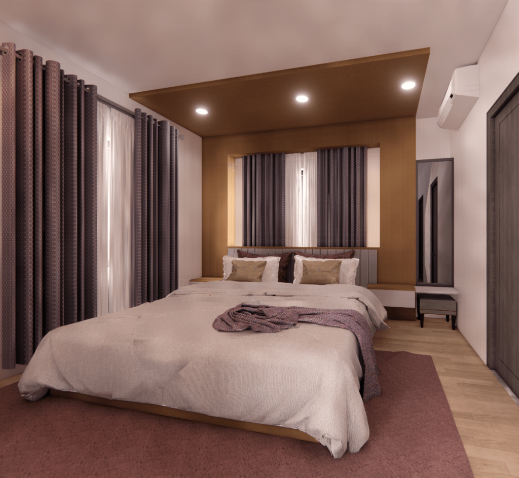 - The interior of Bhandari house was done such that the spaces felt warm and cozy. As such, the spaces consist mostly of wooden elements which complements the furniture as well. The flooring is also done with parquet which fits with the overall aesthetic of the spaces and provides a more homely and cozy atmosphere to the entire residence.