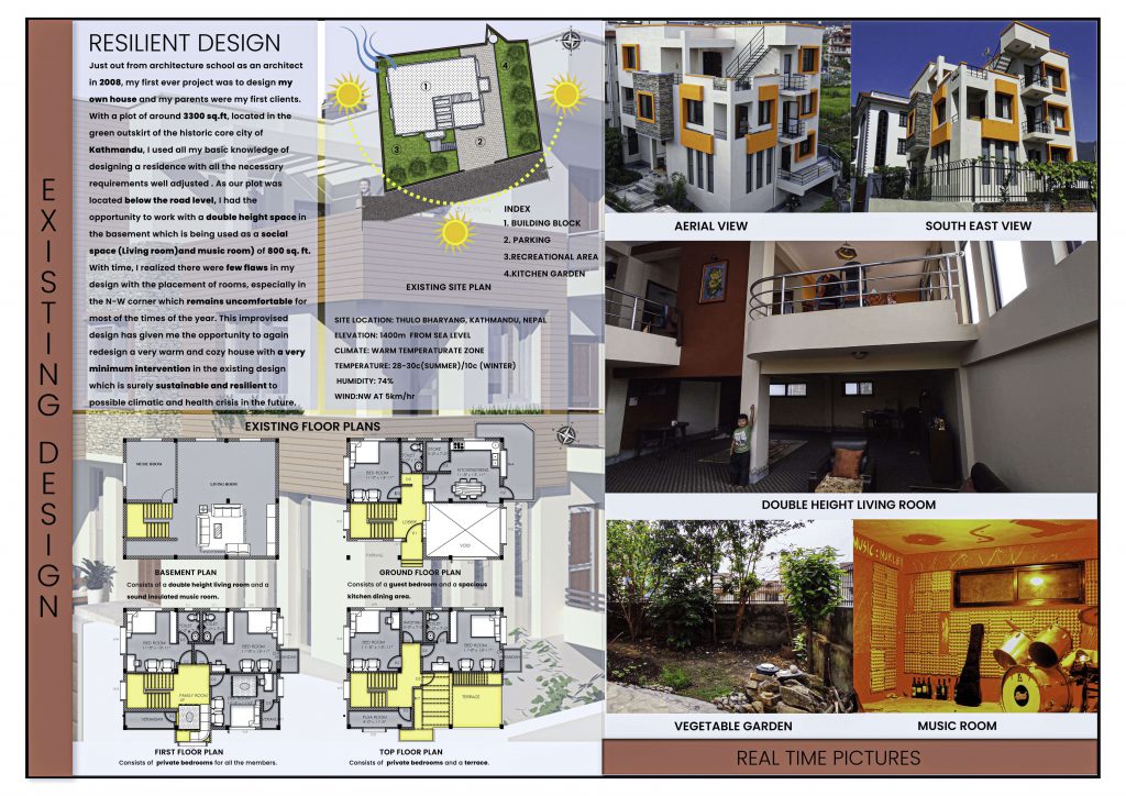 Resilience Design Site location: Thulo Bharyang, Kathmandu Nepal Elevation: 1400m from sea level Climate: Warm Temperature Temperature: 28-30c (Summer)/ 10c (Winter) Humidity: 74% Wind: Nw at 5kh/hr